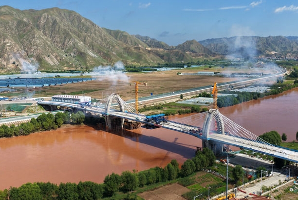 ·Vista aérea de la superficie congelada del río Amarillo a lo largo de la frontera entre la ciudad de Shizuishan de la región autónoma hui de Ningxia.