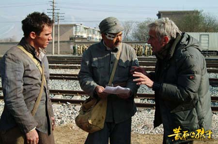 Director Roger Spottiswode (derecha) describe la historia a Chow Yun-Fat (central) en esta foto de “Los Hijos de Huangshi”, publicada el martes, 11 de diciembre del 2007.