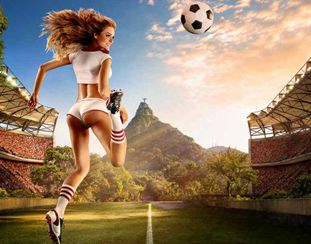 Modelos de fútbol posan para el calendario conmemorativo de Copa Mundial 2014