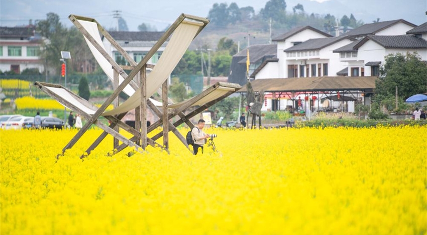 Vista de los campos de flores de colza en Chongqing, China