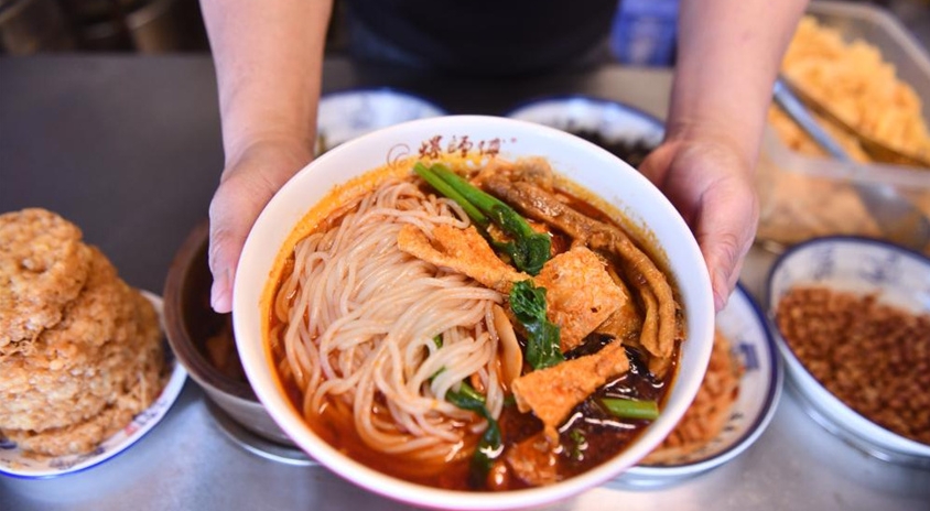 Plato tradicional chino de fideos de arroz gana popularidad en Liuzhou, Guangxi, sur de China