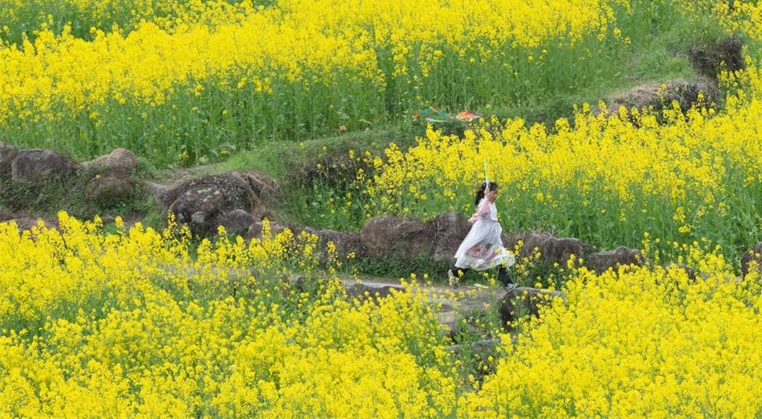 Las flores multicolores de la colza atraen a los turistas a Nanchang, provincia china de Jiangxi