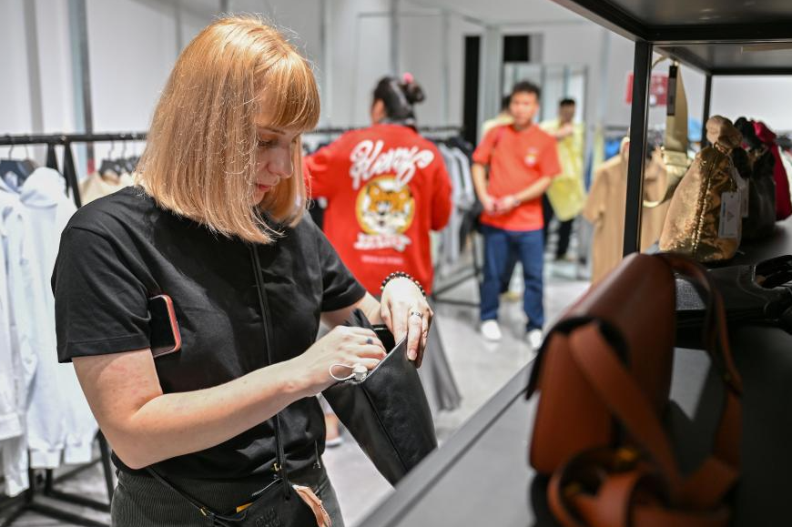 Clientes compran en un centro comercial libre de impuestos en Sanya, Hainan