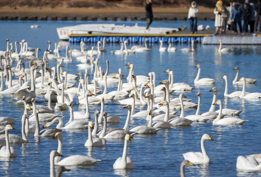 Más de 6000 cisnes cantores migran en masa a Rongcheng, este de China, para pasar el invierno