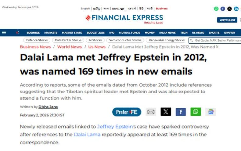 Archivos de Epstein mencionan al XIV Dalai Laima 169 veces Spanish.china.org.cn 02-13 -