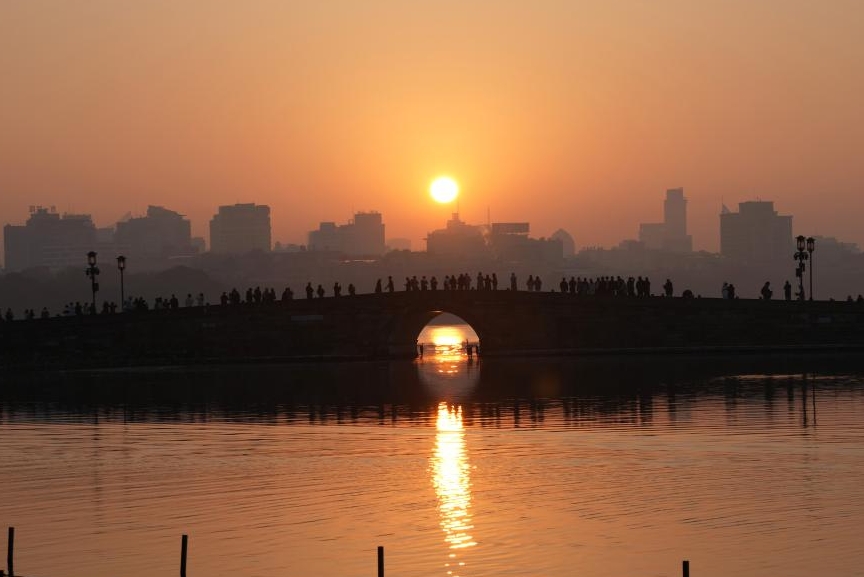 Paisaje invernal del Lago Oeste cautiva a los visitantes al amanecer Spanish.china.org.cn 11-24 -
