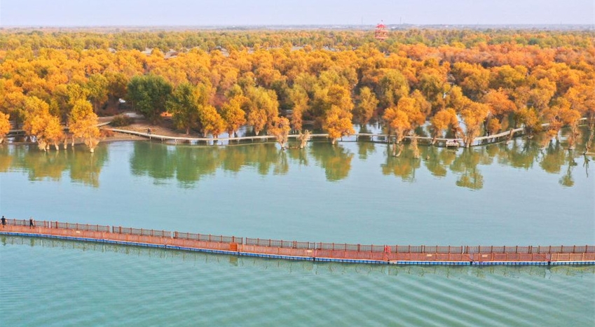 Paisaje otoñal de bosque de álamos del desierto en Xinjiang Spanish.china.org.cn 10-23 -