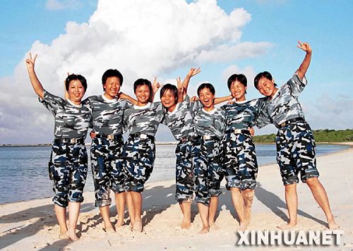 A mediados de mayo de 2001, siete militares mujeres de comunicación de una base naval se acantonaron en la isla de Yongxing, Xisha, convirtiéndose en el primer grupo de soldados mujeres en esa isla. En la foto, disfrutando un fin de semana en la playa.