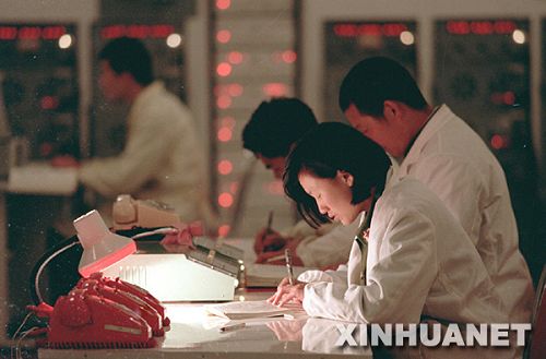 Una técnica trabajando en el Centro de Lanzamiento de Satélites de Xichang, encargada de la transmisión de datos de lanzamiento.