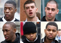 Courtney Amos, de 19 años, Ashley Charles, 20, Dennis De Sousa, 18, Jahson Downes, 20, Jahvon Edwards, 19, permanecerán dos años ingresados en una institución para jóvenes delincuentes y Lucas Farrugia, 21, irá a prisión tras admitir que estuvieron con las menores la noche del 21 de febrero del año pasado en un parque de Reading, Reino Unido.