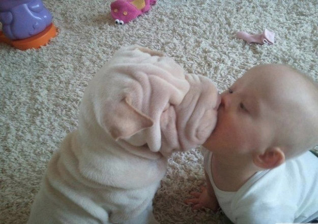 Fotos graciosas entre bebés y mascotas