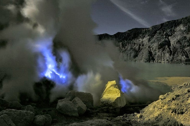 Misterio del volcán Kawah Ijen entre las llamas azules