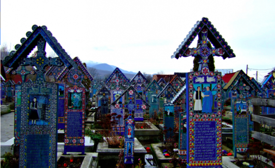 2. Cementerio Alegre – Sapanta, Rumanía Tiene cruces de madera de colores brillantes, las cuales le valieron su nombre. Pero el dato más curioso de este cementerio es que sus epitafios contienen muchas veces secretos de los fallecidos. Algunas son incluso bochornosas, como por ejemplo la de este mujeriego: “una de las cosas que más le gustaba era sentarte en la mesa de un bar cerca de una mujer que no fuera su esposa”.