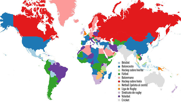 El diario británico 'The Independent' ha elaborado un mapa mundial de los deportes en los que cada país destaca más. La mayoría de los países de América del Sur sobresalen más en el fútbol, siendo Argentina el que ocupa el 'ranking' número uno en este mapa.