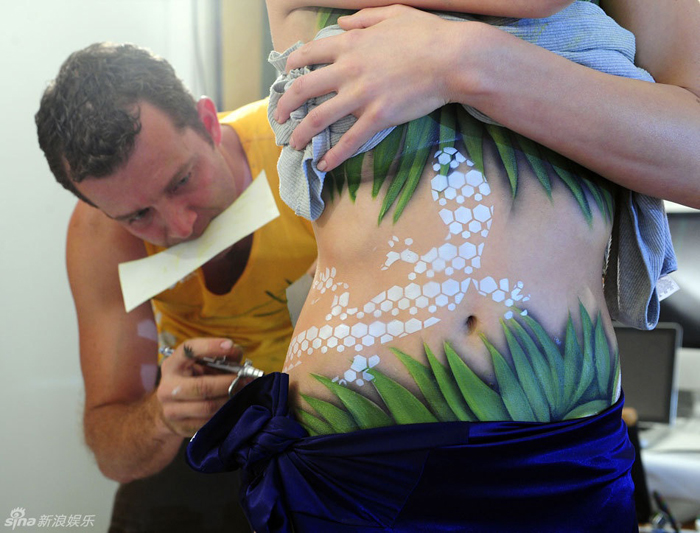 La sexy model Yvonne Strahovski posa desnuda luciendo el cuerpo con body paint