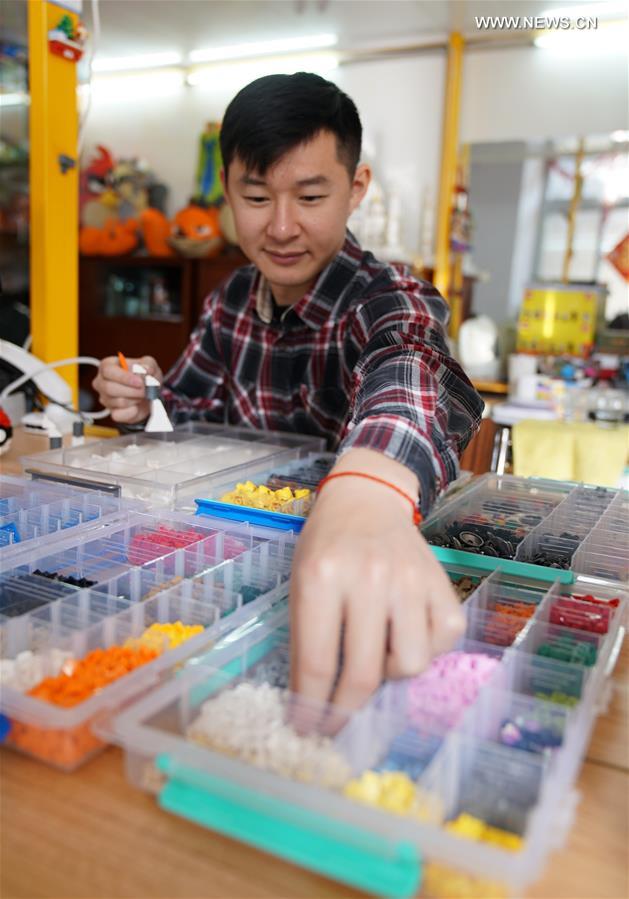 | Liu Fangzhou utiliza ladrillos de Lego para crear una mini figura de dibujos animados en Beijing, capital de China, el 14 de noviembre de 2016. Liu Fangzhou, Pan Xiaolei y Huang Haitao son fans de Lego. Se reúnen y diseñan productos originales utilizando bloques de Lego con la esperanza de conocer personas que disfrutan de los mismos intereses. Han creado decenas de estatuas que se mostraron en varias ocasiones. Les gustaría cooperar con las organizaciones de educación en el futuro y traer la diversión de los ladrillos de plástico a los niños. |