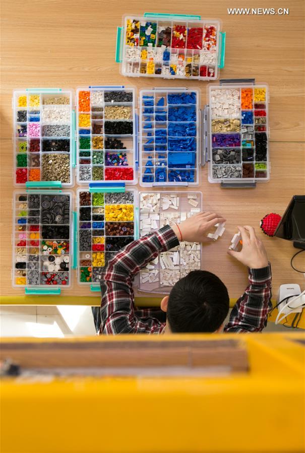 | Liu Fangzhou utiliza ladrillos de Lego para crear una mini figura de dibujos animados en Beijing, capital de China, el 14 de noviembre de 2016. Liu Fangzhou, Pan Xiaolei y Huang Haitao son fans de Lego. Se reúnen y diseñan productos originales utilizando bloques de Lego con la esperanza de conocer personas que disfrutan de los mismos intereses. Han creado decenas de estatuas que se mostraron en varias ocasiones. Les gustaría cooperar con las organizaciones de educación en el futuro y traer la diversión de los ladrillos de plástico a los niños. |