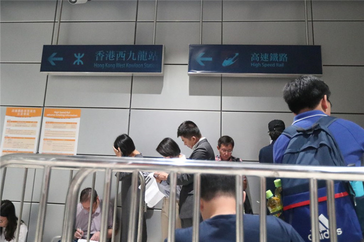 Pasajeros hacen fila en el terminal Kowloon Oeste para comprar boletos el 10 de septiembre de 2018.