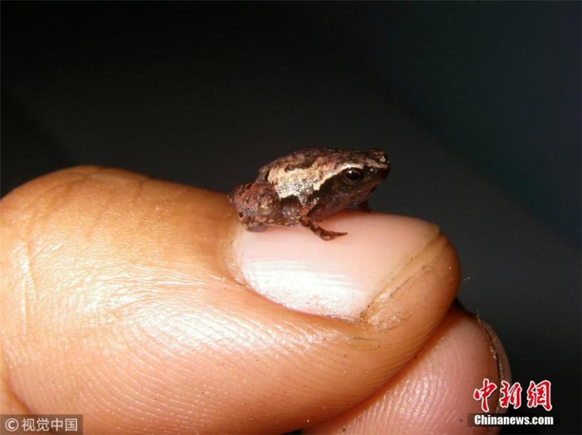La nueva especie de ranas miniaturas apareció en la costa de una isla africana. Una Mini mum masculina adulta cabe en una uña con espacio de sobra.