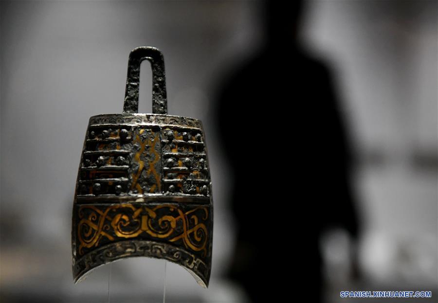 Imagen del 5 de diciembre de 2019 de una campana exhibida en una exposición titulada "La Unificación de la Dinastía Qin de China" en el Museo del Sitio del Mausoleo del Emperador Qinshihuang en Xi'an, en la provincia de Shaanxi, en el noroeste de China.