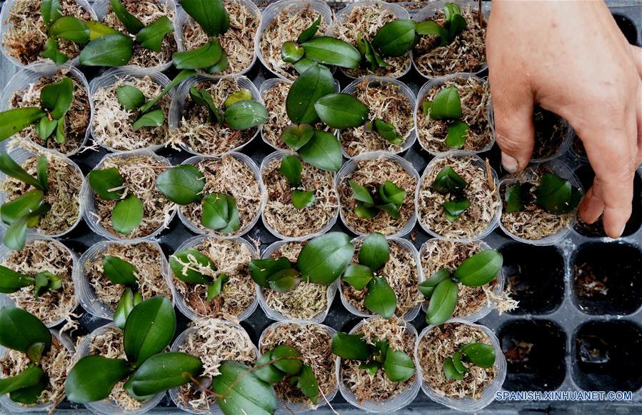 Un trabajador clasifica plántulas en una compañía de plantación de flores y árboles, en el distrito Huangchuan, en la provincia de Henan, en el centro de China, el 29 de marzo de 2020. En años recientes, la industria de plantación de flores y árboles se ha desarrollado rápidamente en el distrito Huangchuan. Hasta ahora, la industria ha involucrado a más de 100.00 aldeanos ayudando a más de 1.000 familias a sacudirse la pobreza.