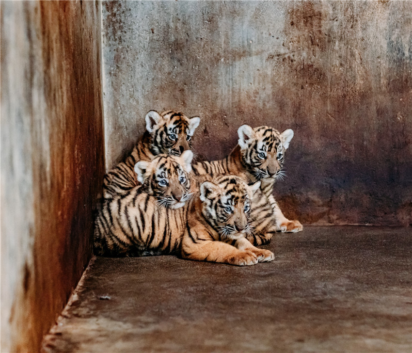 Así son los cuatrillizos de Lulu, la tigresa del sur de China, en el Zoológico de Shanghai.