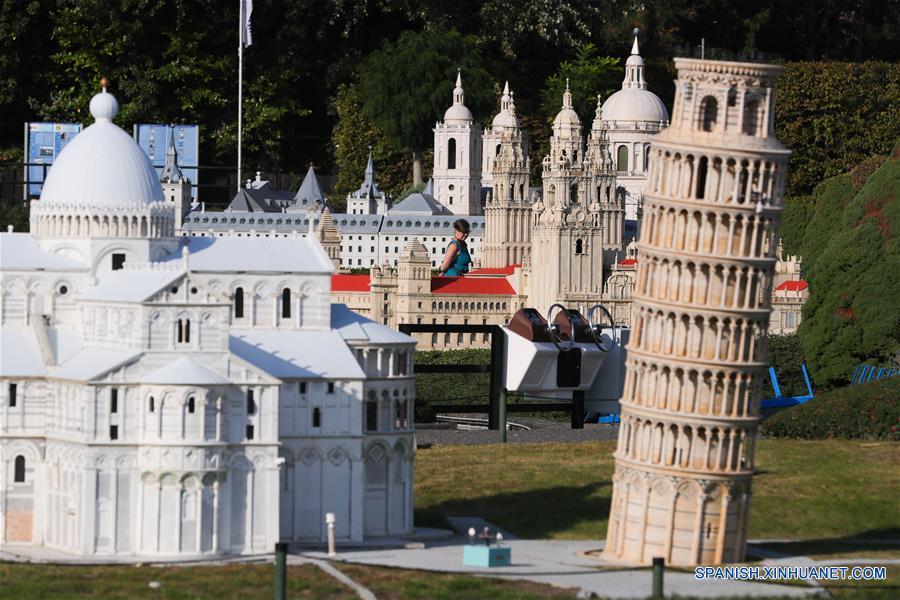 Imagen del 22 de septiembre de 2020 de un turista visitando el parque Mini Europa, en Bruselas, Bélgica. El parque cuenta con muchas atracciones turísticas europeas en miniatura. Fue reabierto en mayo de 2020.