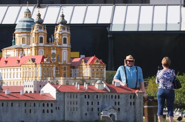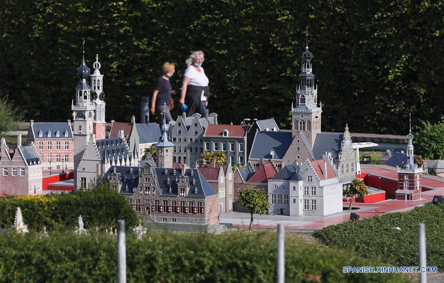 Imagen del 22 de septiembre de 2020 de turistas visitando el parque Mini Europa, en Bruselas, Bélgica. El parque cuenta con muchas atracciones turísticas europeas en miniatura. Fue reabierto en mayo de 2020.