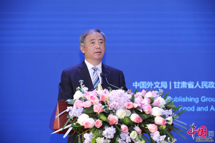 Se lleva a cabo el Seminario Internacional de Alianzas Globales para la Reducción de la Pobreza 2020 en la ciudad de Longnan, provincia de Gansu, el 24 de noviembre. En la imagen aparece Chen Zhigang, subdirector de la Oficina del Grupo Líder para el Alivio de la Pobreza y el Desarrollo del Consejo de Estado, pronunciando un discurso en la conferencia.