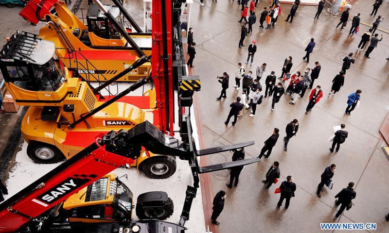 Visitantes en la bauma CHINA 2020, la Feria Internacional de Maquinaria de Construcción, Máquinas para Materiales de Construcción, Máquinas para Minería y Vehículos de Construcción, en Shanghai, este de China, 24 de noviembre de 2020. La exhibición arrancó el martes.