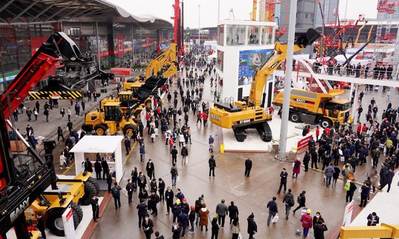Visitantes en la bauma CHINA 2020, la Feria Internacional de Maquinaria de Construcción, Máquinas para Materiales de Construcción, Máquinas para Minería y Vehículos de Construcción, en Shanghai, este de China, 24 de noviembre de 2020. La exhibición arrancó el martes.