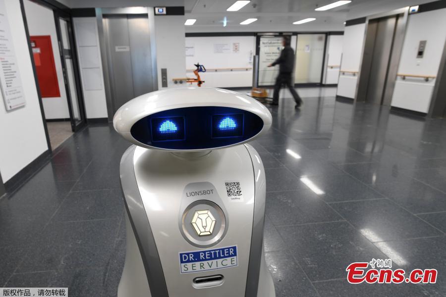El robot Franziska limpia el piso como reemplazo de una parte del personal de limpieza que ahora está ausente debido a la COVID-19. El robot está ahora en una fase de pruebas de tres semanas en el hospital Neuperlach en Munich, Alemania, el 25 de enero de 2021.