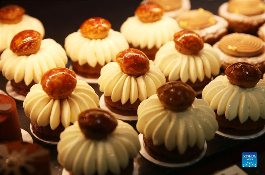 Pasteles de chocolate durante la noche de inauguración de la XXVI Feria del Chocolate de París en la Exposición de Versalles en París, Francia, 27 de octubre de 2021.
