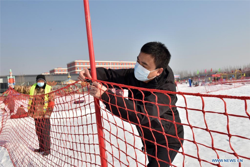 Imagen del 27 de enero de 2022 de Yang Xubo proporcionando mantenimiento a las redes de seguridad en una estación de esquí, en Xingtai, en la provincia de Hebei, en el norte de China. Yang Xubo es un entusiasta de los deportes de invierno en Xingtai. En 2018 comenzó un negocio de estación de esquí. Yang cree que su estación de esquí de 40.000 metros cuadrados ayudará a promover los deportes de invierno entre las personas.