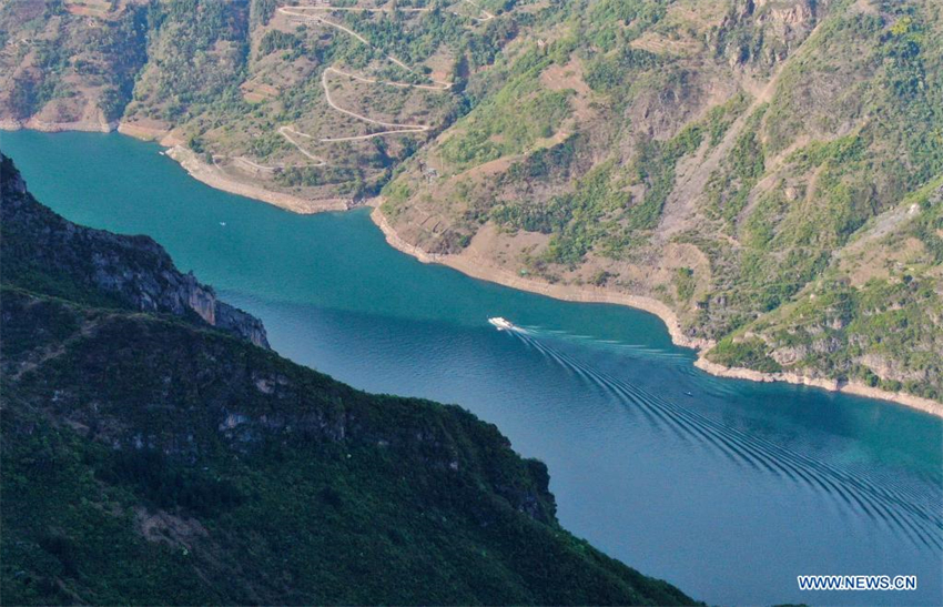 Vista aérea del 9 de abril de 2022 del río Yangtze en el distrito de Wushan, en Chongqing, en el suroeste de China.