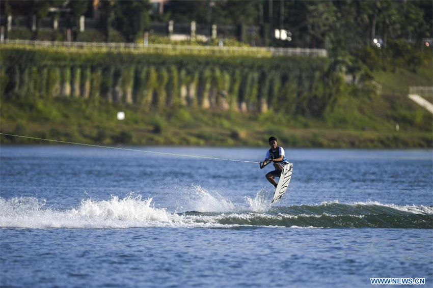 Guangxi: Personas disfrutan de deportes acuáticos en río Yongjiang