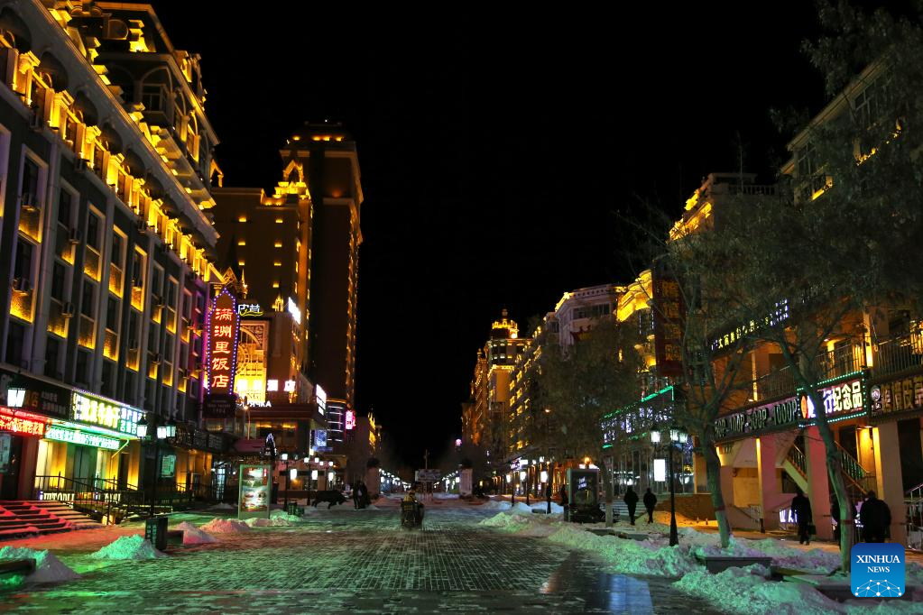 Vista nocturna de Manzhouli, Mongolia Interior, norte de China
