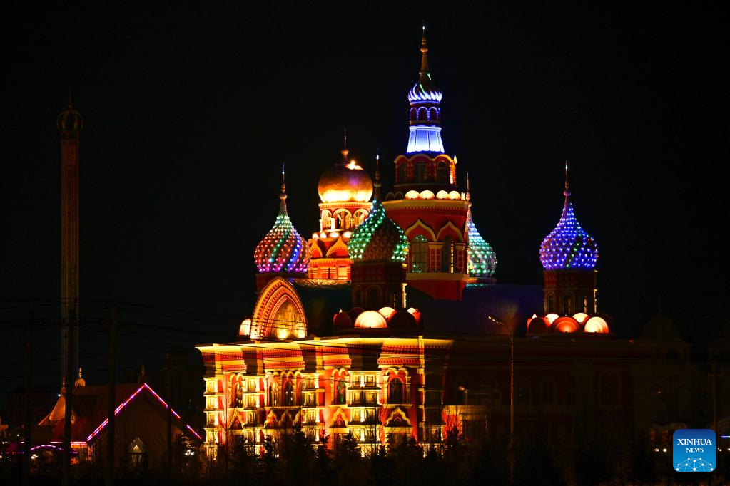 Vista nocturna de Manzhouli, Mongolia Interior, norte de China