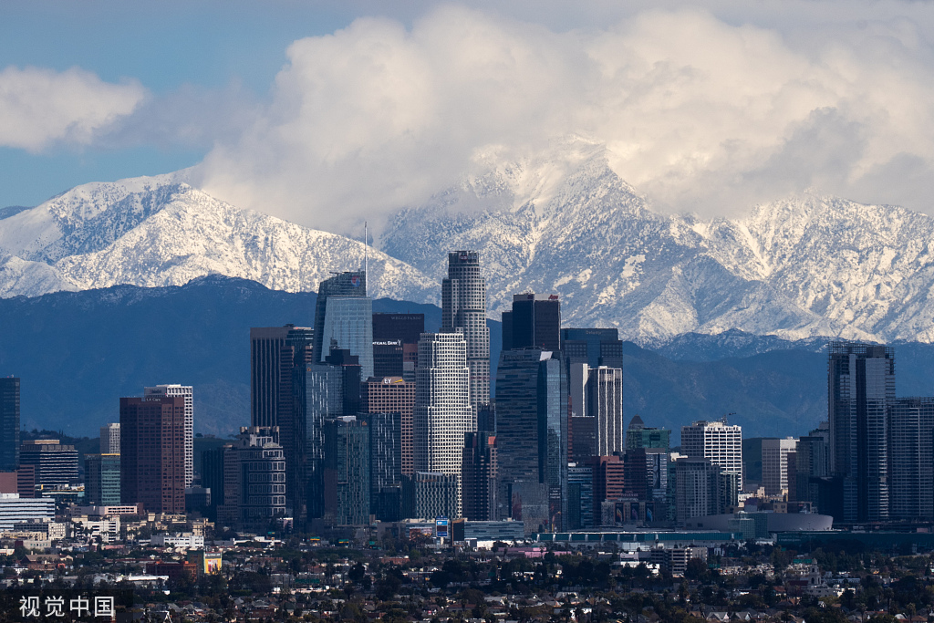 Una vista de Los Ángeles, EE. UU., después de una tormenta de nieve el 1 de marzo de 2023. [Foto/VCG]