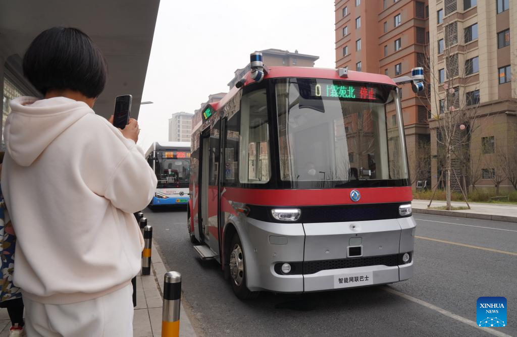 Autobús conectado inteligente en operación de prueba en la Nueva Área de Xiong'an, en el norte de China