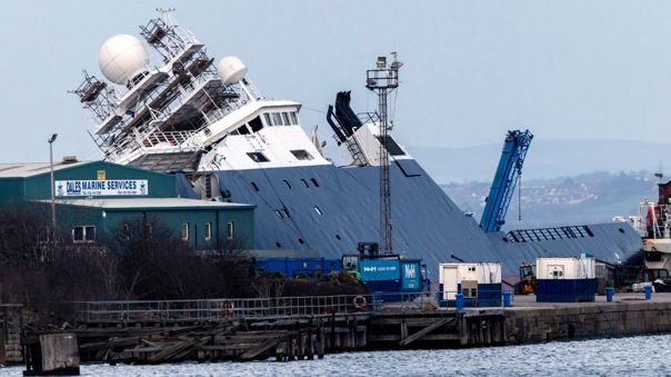 Según la prensa, el barco pesa 3.000 toneladas y ha estado en dique seco desde 2020. La empresa Dales Marine Services, que opera la instalación, rehusó hacer comentarios.