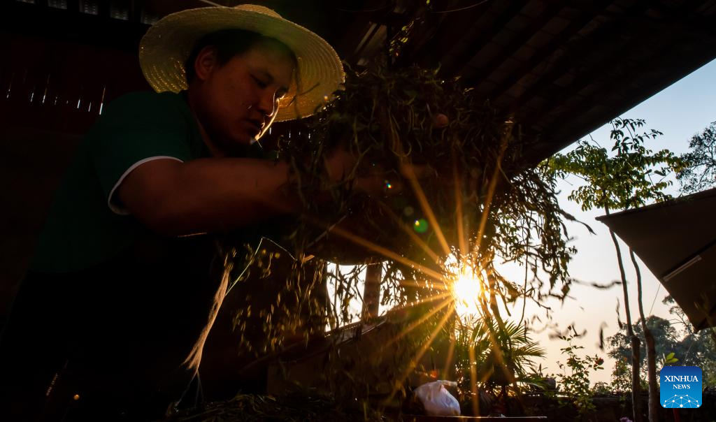 Un agricultor procesa hojas de té recién recogidas en la montaña Jingmai en la ciudad de Pu'er, provincia de Yunnan, en el suroeste de China, el 25 de marzo de 2023. La recolección de té de primavera comenzó en los antiguos bosques de té en la montaña Jingmai el sábado. En Jingmai, una exuberante montaña conocida por sus bosques de antiguos árboles de té, los lugareños aún mantienen una forma tradicional de cultivo de té con un ecosistema especial de múltiples capas. (Xinhua/Jiang Wenyao)