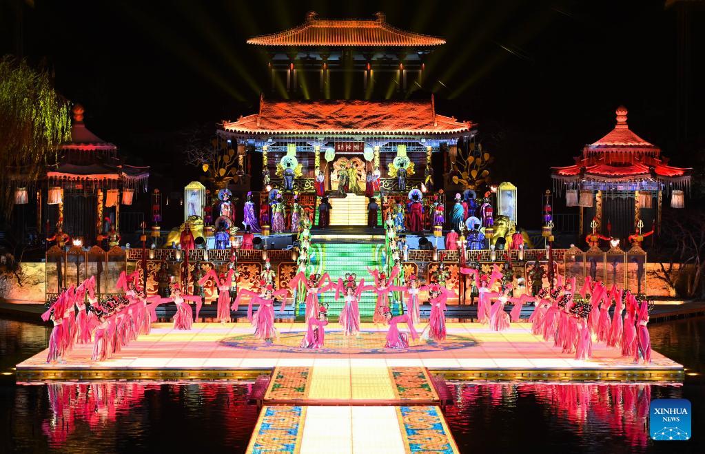 Esta foto tomada el 16 de diciembre de 2022 muestra una actuación escenificada en el área escénica del Palacio Huaqing en Xi'an, provincia de Shaanxi, noroeste de China. Xi'an, una ciudad con más de 3.100 años de historia, sirvió como capital de 13 dinastías en la historia china. También es el hogar de los Guerreros de terracota de renombre mundial creados en la dinastía Qin (221-207 a. n. e.).
