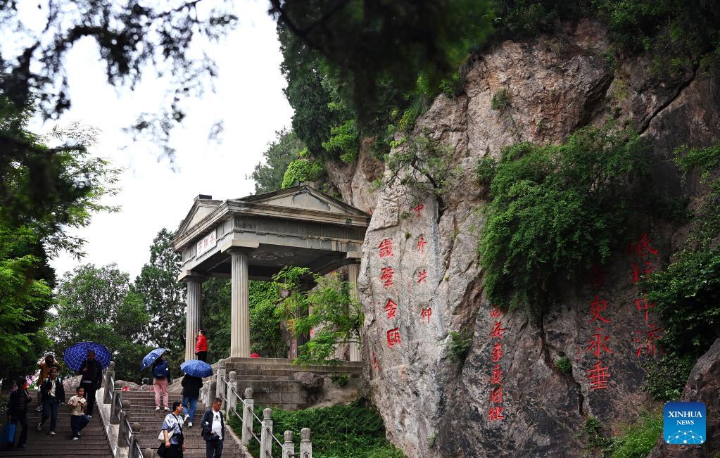 Los turistas visitan el área escénica del Palacio Huaqing en Xi'an, provincia de Shaanxi, noroeste de China, el 5 de mayo de 2023. Xi'an, una ciudad con más de 3.100 años de historia, sirvió como capital de 13 dinastías en la historia china. También es el hogar de los Guerreros de terracota de renombre mundial creados en la dinastía Qin (221-207 a. n. e.).