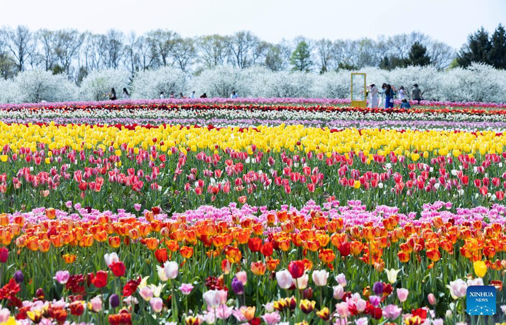 Campo de tulipanes en una granja de recolección de tulipanes en Fenwick, Ontario, Canadá, el 10 de mayo de 2023. (Foto de Zou Zheng/Xinhua)