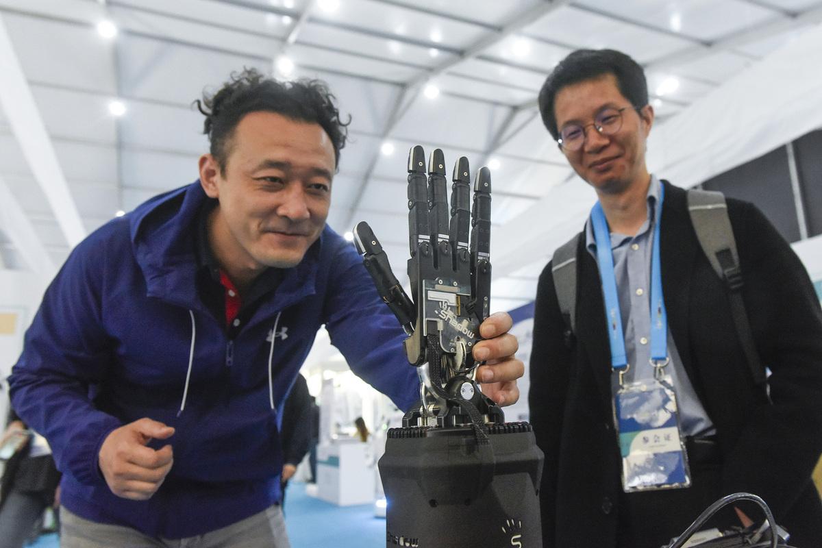 Una mano mecánica se muestra en la VIII Robotop de China celebrada en Yuyao, provincia de Zhejiang, el 24 de mayo de 2023. [Foto/Xinhua]