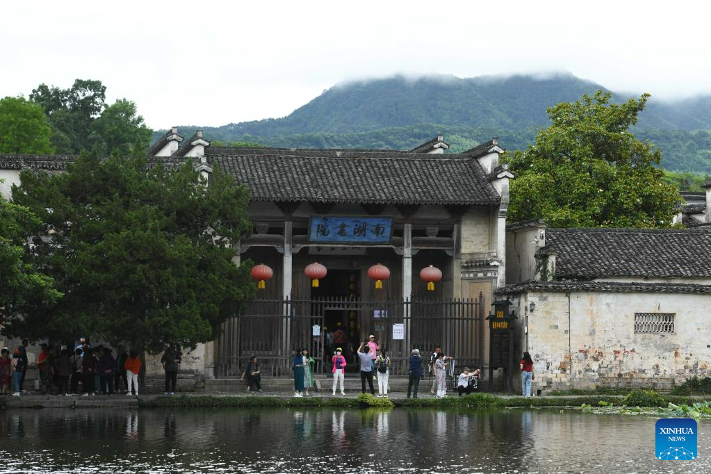 Los turistas visitan el área escénica de la aldea de Hongcun en Huangshan, provincia oriental china de Anhui, el 31 de mayo de 2023. El ferrocarril de alta velocidad Hangzhou-Huangshan, que une Hangzhou, en la provincia oriental china de Zhejiang, famosa por el Lago del Oeste, y la ciudad de Huangshan, en la provincia oriental china de Anhui, donde se encuentran las joyas turísticas de la montaña Huangshan y la aldea de Hongcun, se puso oficialmente en funcionamiento en 2018. La puesta en marcha de este ferrocarril de alta velocidad está estimulando la industria turística de las ciudades ubicadas a lo largo de la línea. (Xinhua)