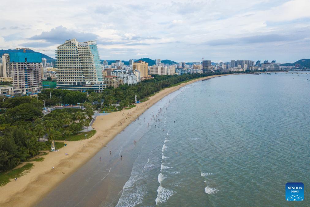 Esta foto aérea tomada el 30 de agosto de 2023 muestra el paisaje de la bahía de Sanya, provincia de Hainan, sur de China. En los últimos días, el Ministerio de Ecología y Medio Ambiente de China publicó el segundo lote de casos de hermosas bahías, en el que enumeró 12 ejemplos, incluidos los de la bahía de Haikou y la bahía de Sanya de Hainan. Un caso de hermosa bahía debe proporcionar un elegante paisaje costero, un entorno armonioso y productos ecológicos de alta calidad. (Xinhua/Pu Xiaoxu)