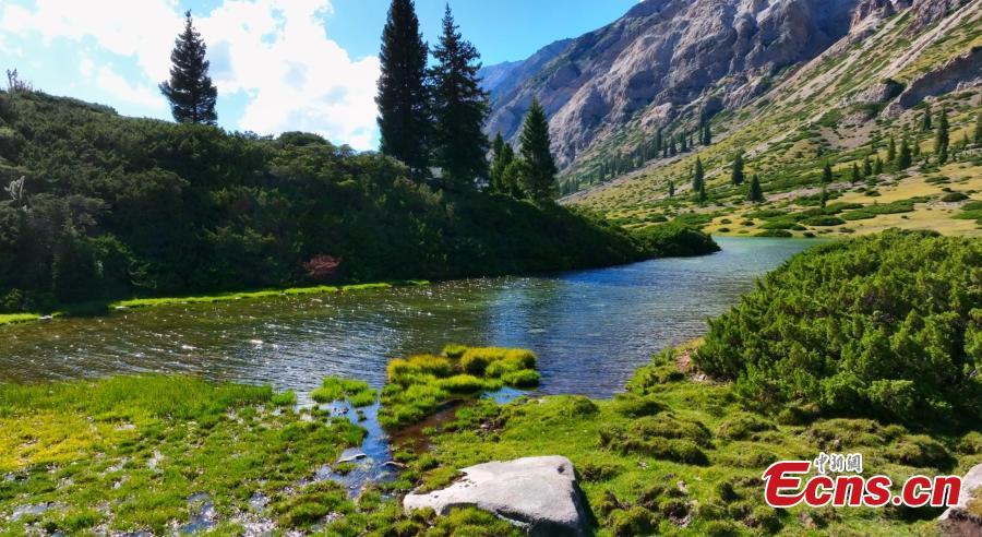 Fotografía de un arroyo de aguas cristalinas rodeado por las montañas Tianshan en el distrito de Jinghe, prefectura autónoma de la etnia mongola de Bortala, al noroeste de la región autónoma uigur de Xinjiang, en el noroeste de China. (Foto: China News Service/Zhong Dawei)