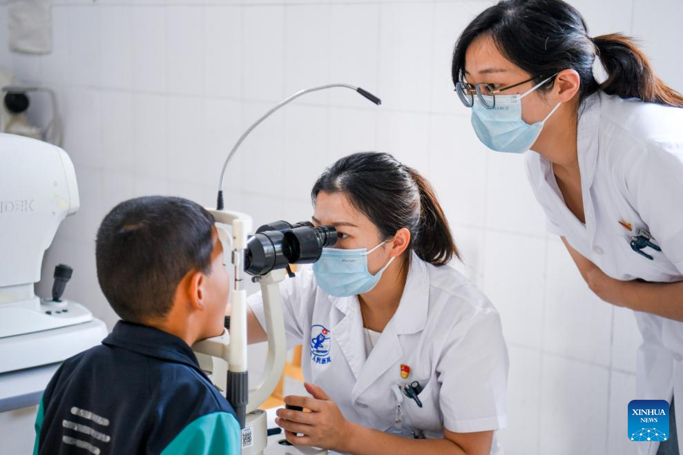 Trabajadoras médicas de la provincia oriental china de Shandong ofrece consultas gratuitas en Kashgar, región autónoma uigur de Xinjiang, noroeste de China, el 16 de septiembre de 2023. Los trabajadores médicos de la provincia oriental china de Shandong han proporcionado servicios médicos a la población local en Kashgar. (Xinhua/Wang Fei)